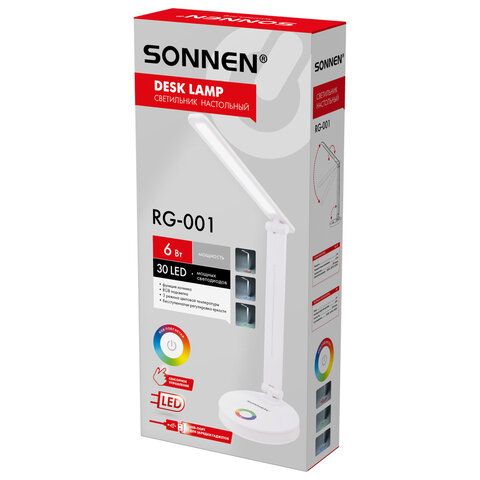 Настольная лампа-светильник, ночник SONNEN RG-001, 30 LED, 6 Вт, 3 режима, RGB-подсветка, белый, 238774