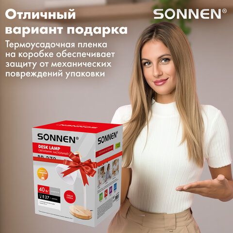 Настольная лампа светильник SONNEN BR-372, на подставке, лампочка в ПОДАРОК!, E27, белый, 40см, 238447