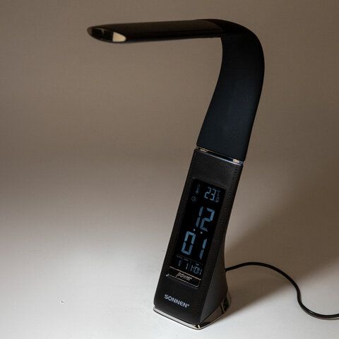 Настольная лампа-светильник SONNEN SM-01B на подставке, LCD-экран, СВЕТОДИОДНАЯ, 5 Вт, черный, 238232