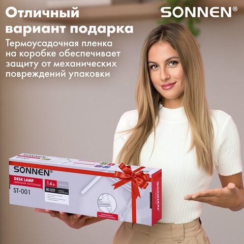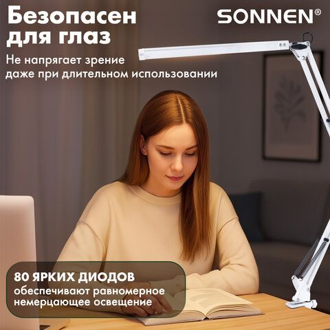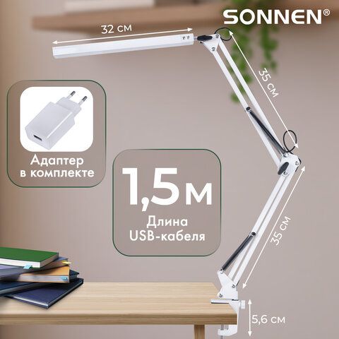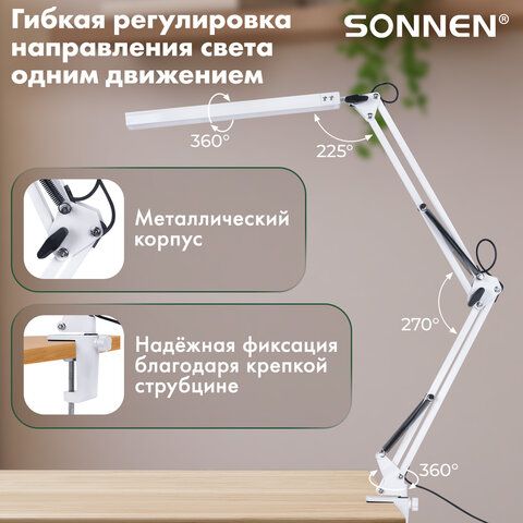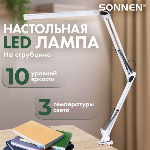 Настольная лампа светильник SONNEN ST-001, струбцина, LED, 14Вт, 3 режима цветовой температуры, металлический корпус, 70см, 238498
