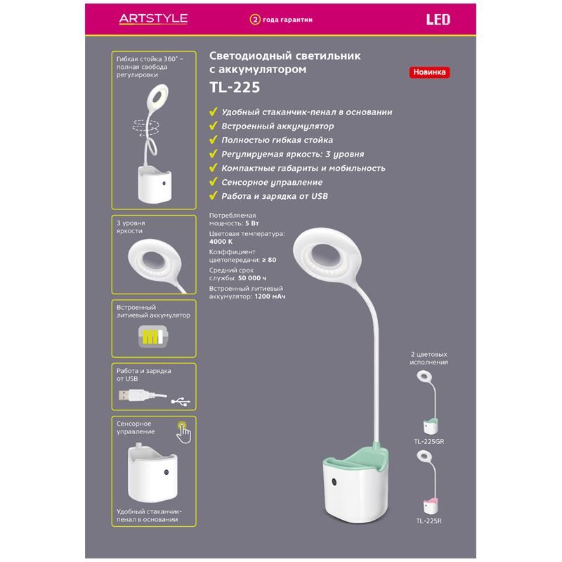 Как и все современные и высокотехнологичные гаджеты, светильник TL-225 имеет сенсорное, интуитивно понятное управление. В основание светильника интегрирован удобный стаканчик-пенал.