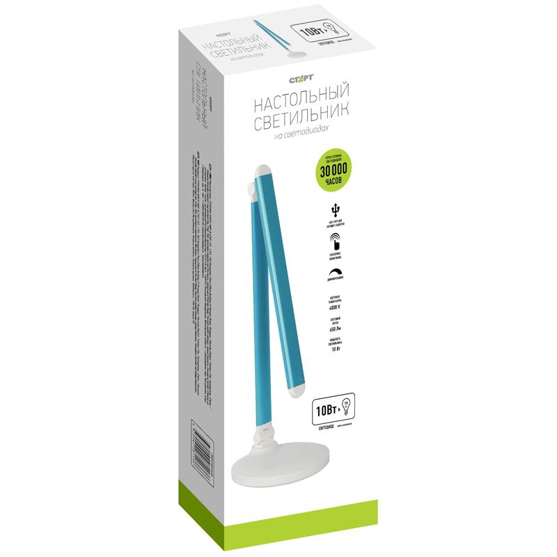 Светильник настольный на подставке СТАРТ CT209, 10Вт, LED, сенс. упр., USB зарядка, синий
