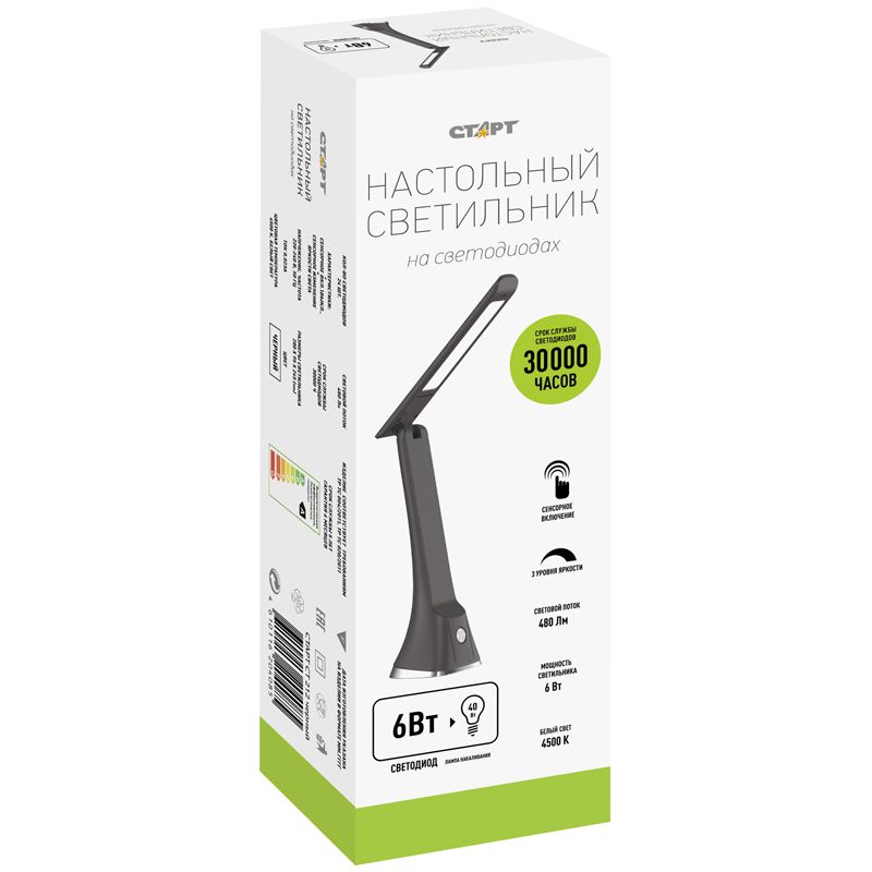Светильник настольный на подставке СТАРТ CT212, 6Вт, LED, сенс. упр., черный