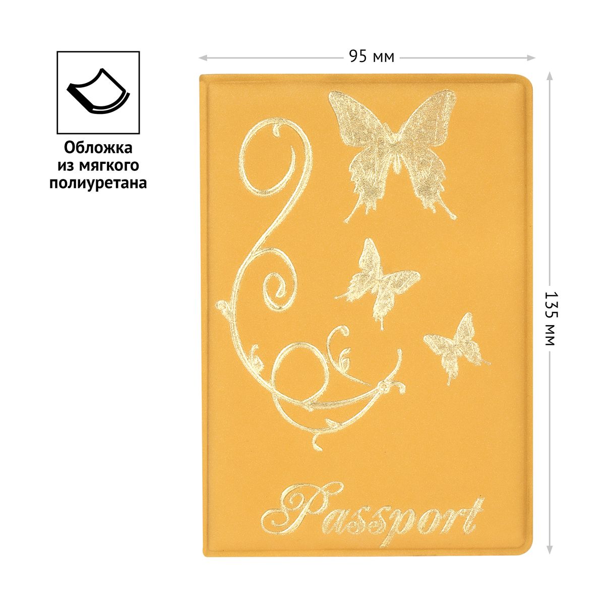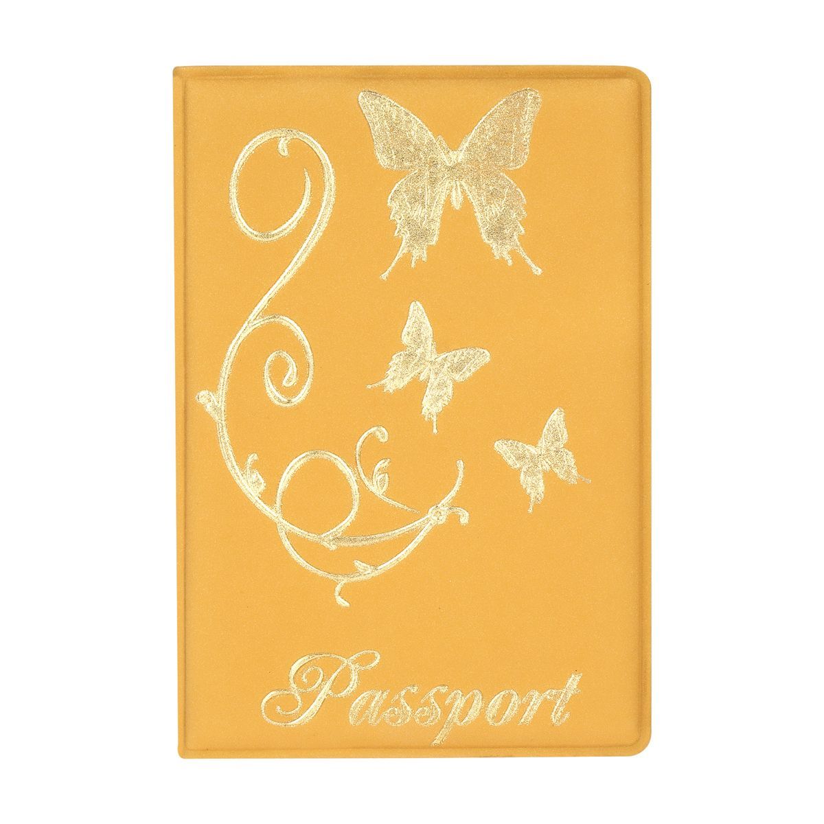 Обложка для паспорта OfficeSpace "Бабочки" мягкий полиуретан, золотая, тиснение золотом