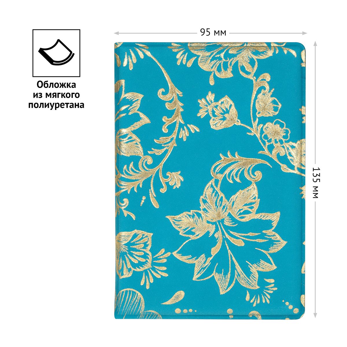 Обложка для паспорта OfficeSpace "Blooming" мягкий полиуретан, бирюзовая, тиснение золотом