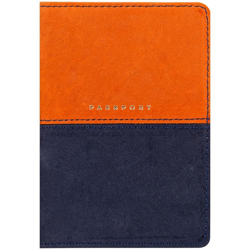 Обложка для паспорта OfficeSpace "Duo", кожа, осень+тм.синий, тиснение фольгой