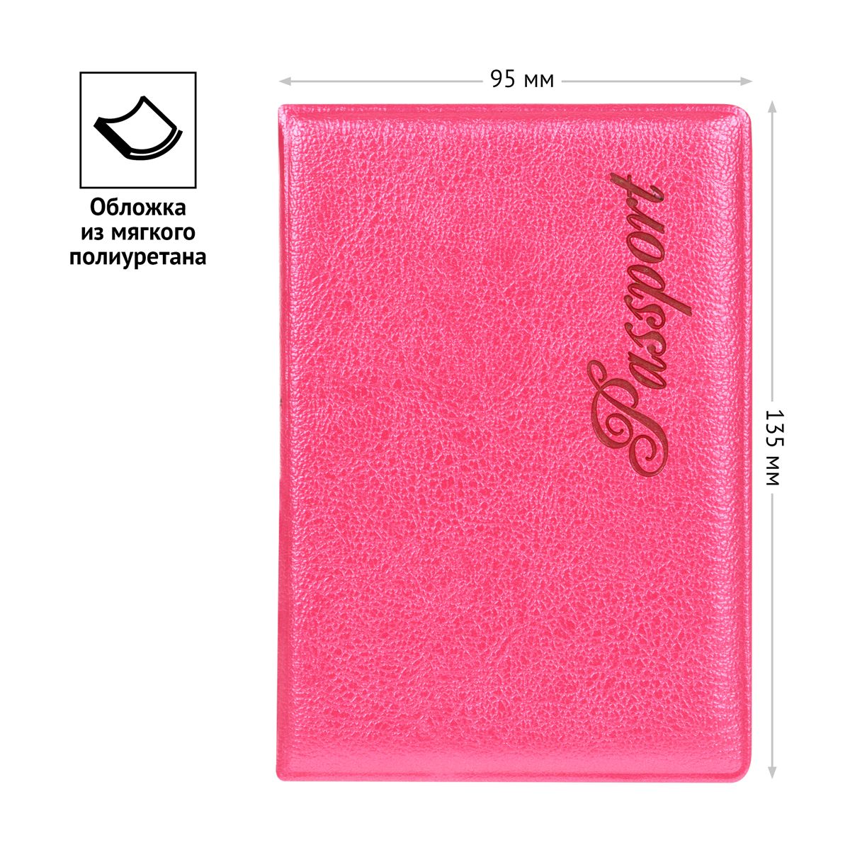 Стильный дизайн обложки малинового цвета с тиснением на лицевой стороне поможет обратить на себя внимание. Обложка упакована в индивидуальный пакет.