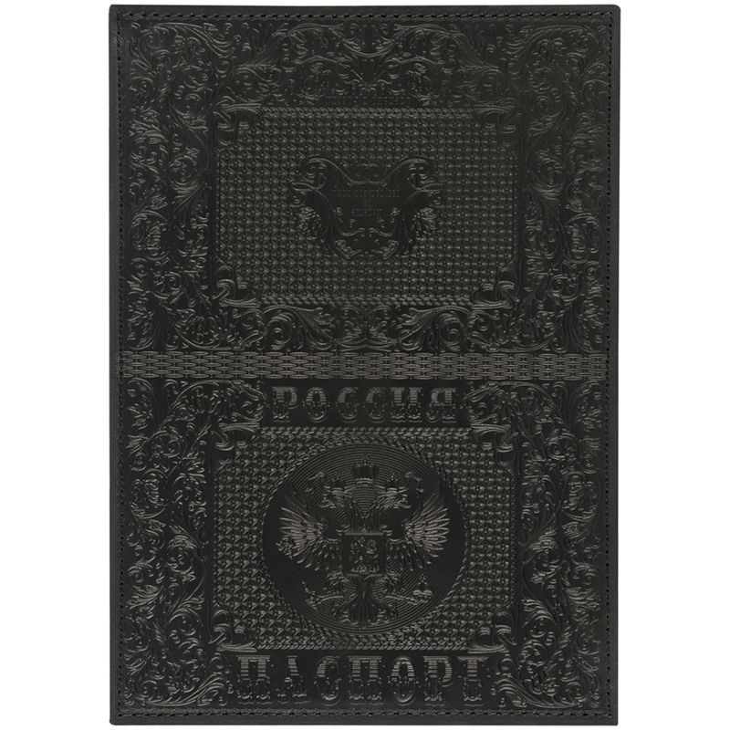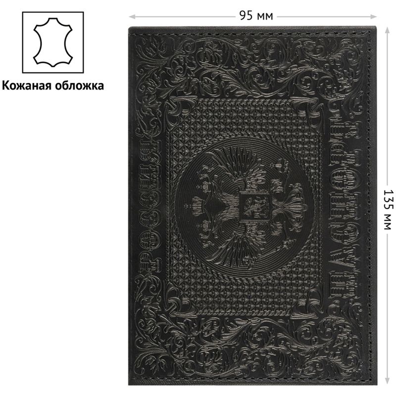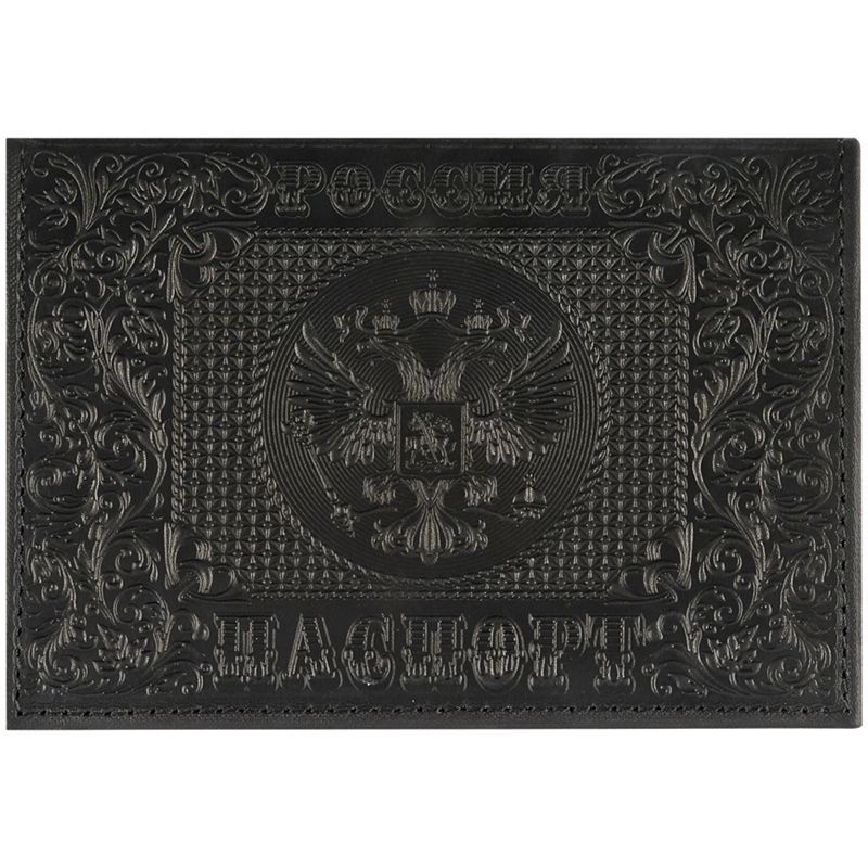 Обложка для паспорта OfficeSpace "Россия", кожа, тиснение, черная