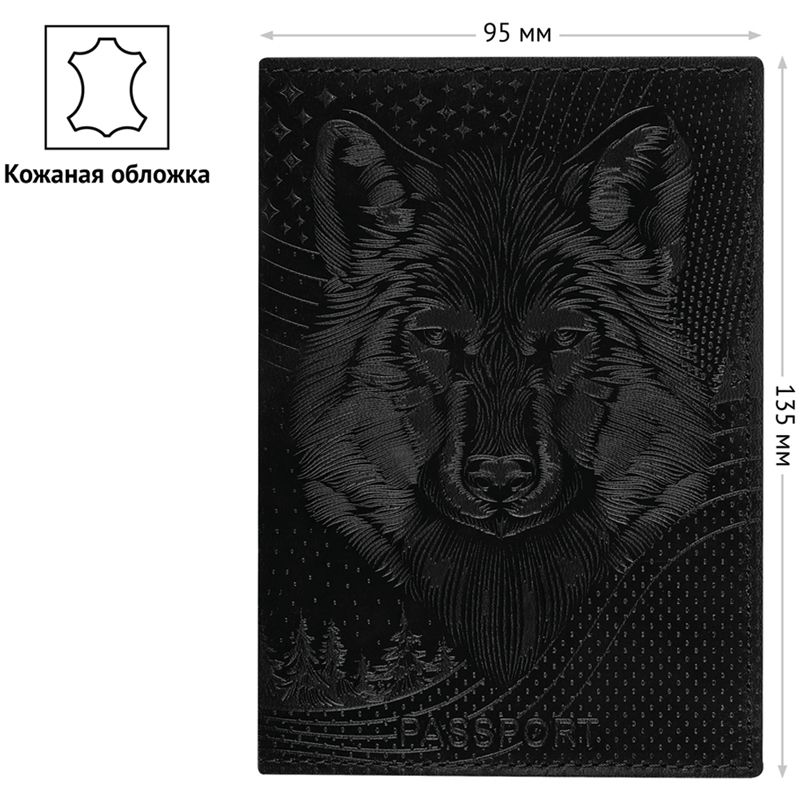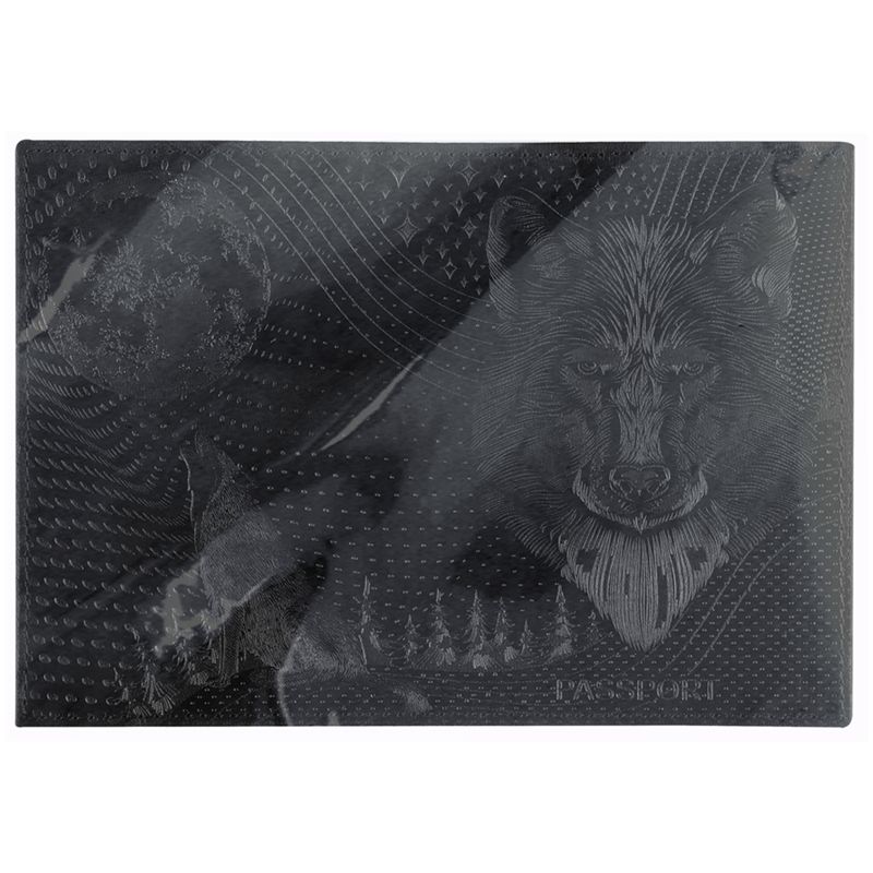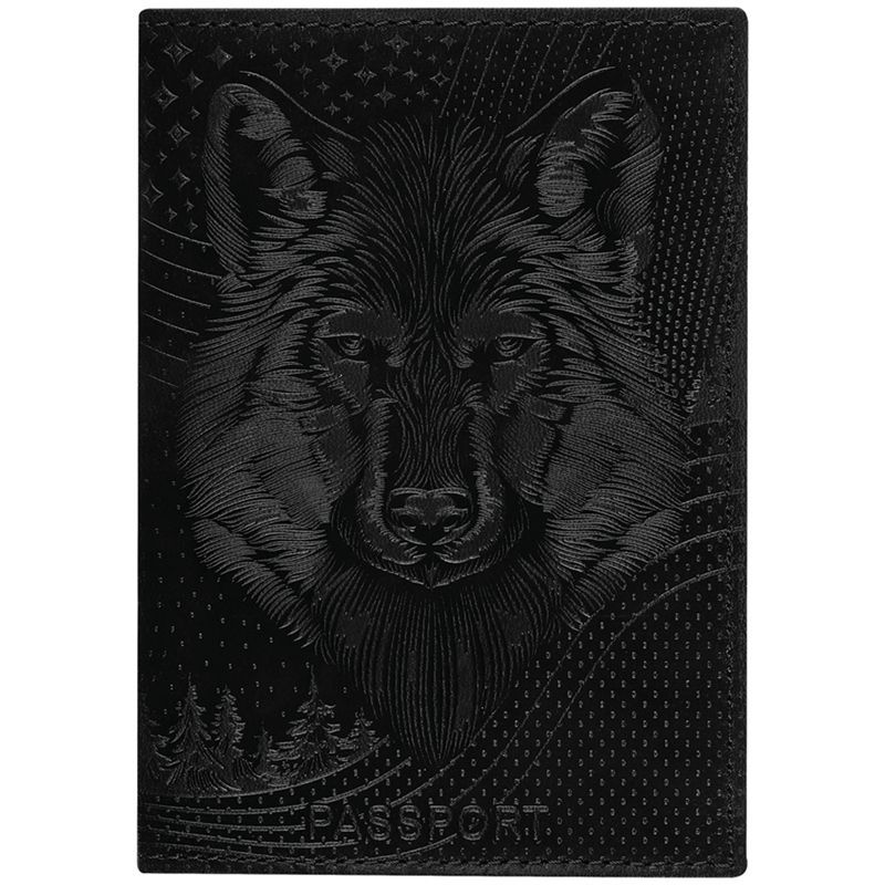 Обложка для паспорта OfficeSpace "Волк", кожа, тиснение, черная
