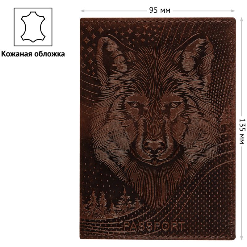 Обложка для паспорта OfficeSpace "Волк", кожа, тиснение, коричневая