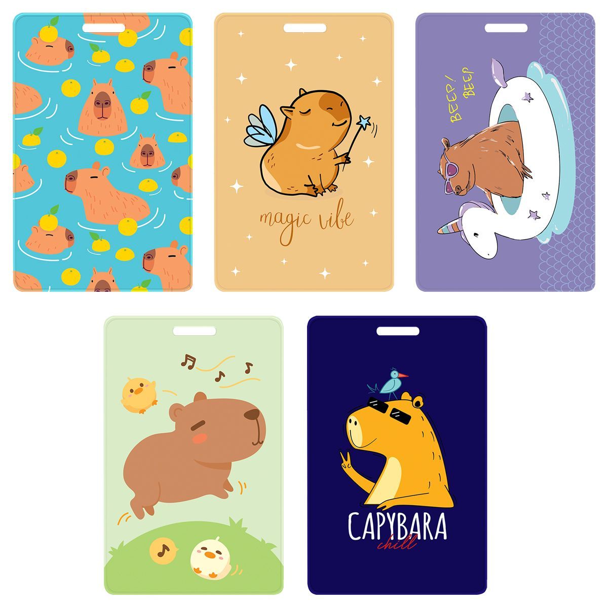 Обложка-карман для карт и пропусков OfficeSpace "Капибара", 95*65мм, ПВХ, ассорти