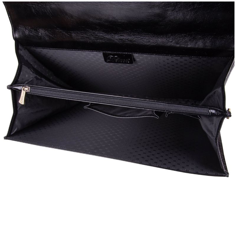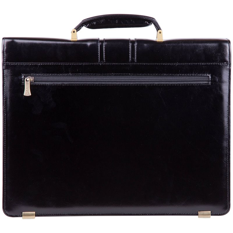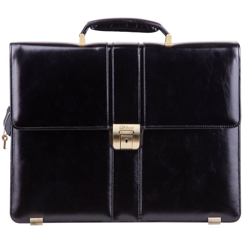 Портфель Delucci "Гиперион", кожа, черный, 2 отделения, метал. замок, с ремнем