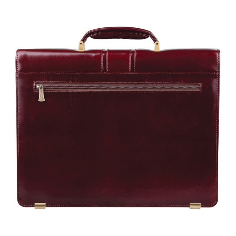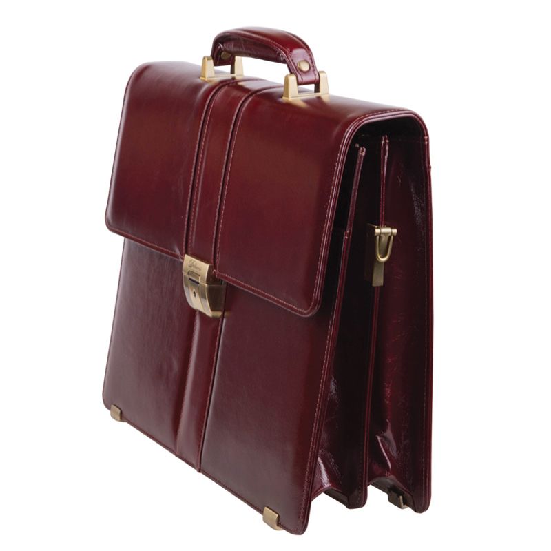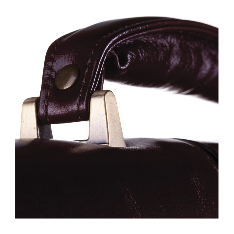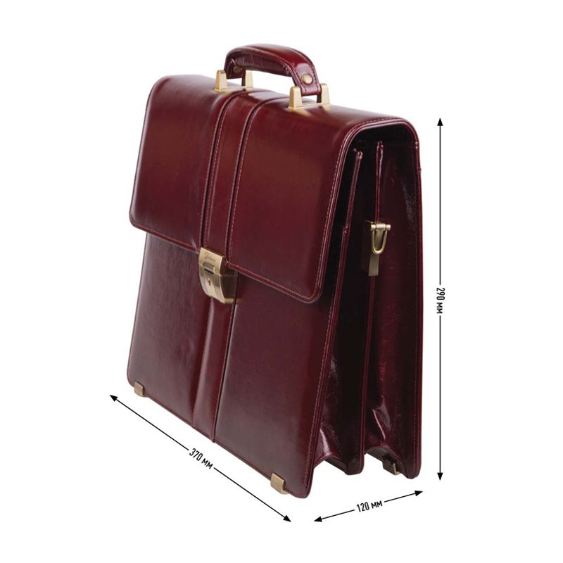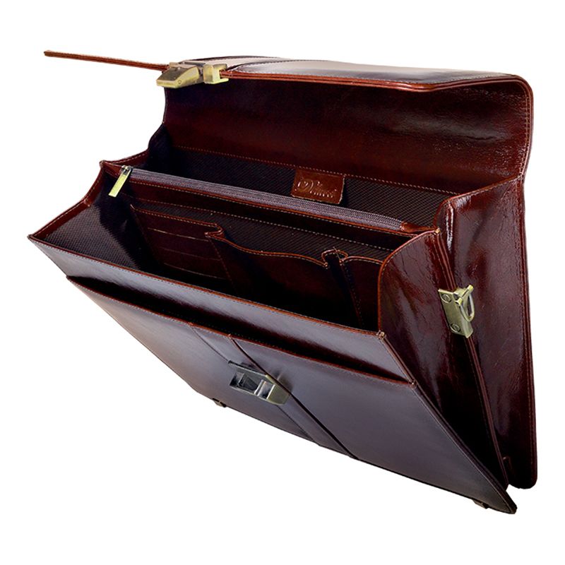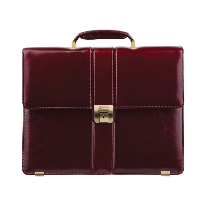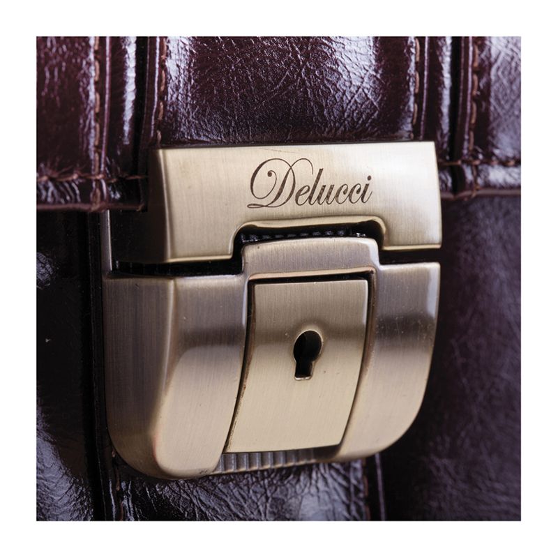 Портфель Delucci "Гиперион", кожа, темный коньяк, 2 отделения, метал. замок, с ремнем
