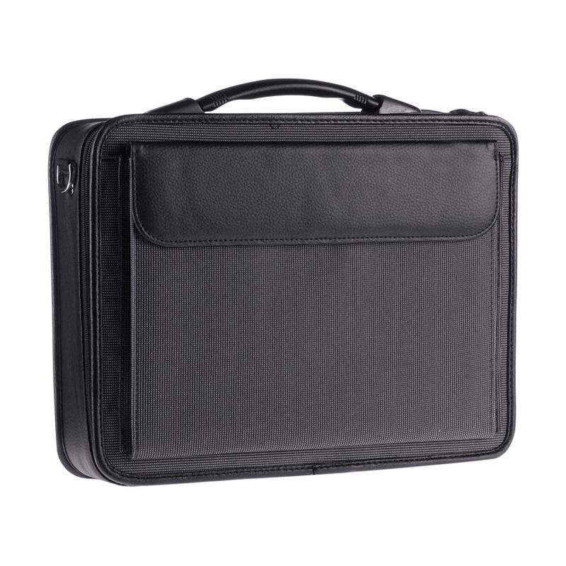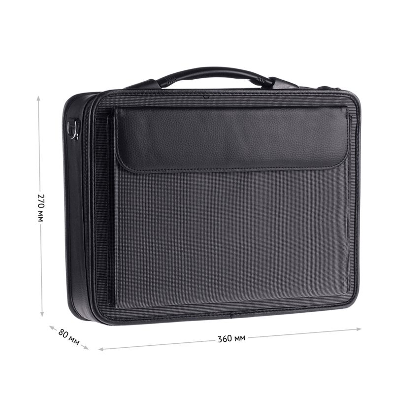Портфель OfficeSpace "Fortuna", комбинир. кожзам/полиэстер, черный, 3 отделения, молния, с ремнем