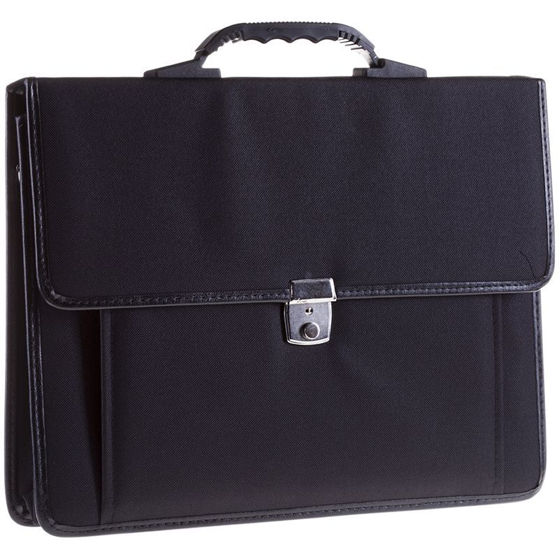 Портфель OfficeSpace "Hannover", ткань, черный, 3 отделения, метал. замок, с ремнем