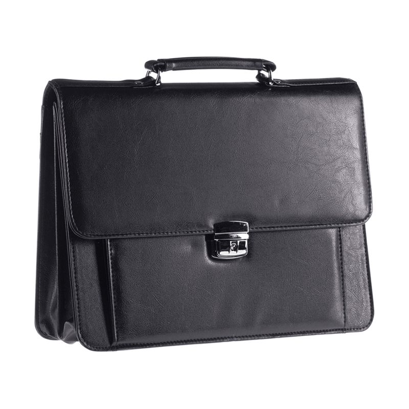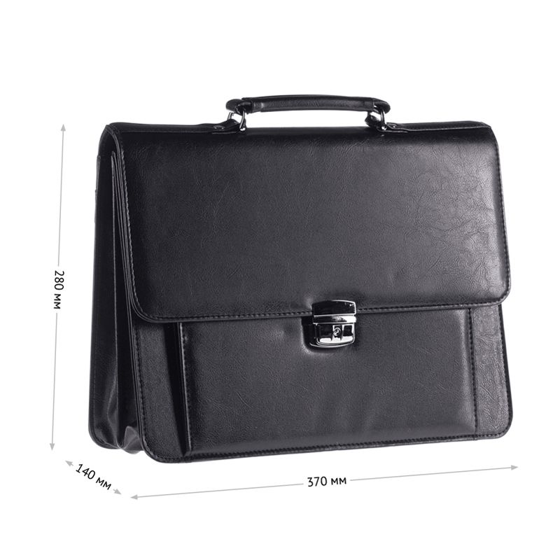 Портфель OfficeSpace "Irida", кожзам, черный, 2 отделения, метал. замок