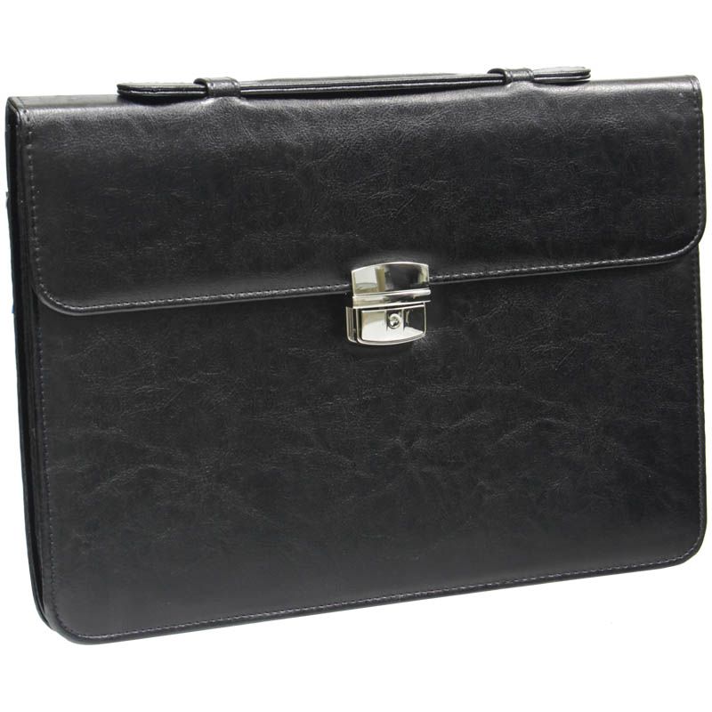 Портфель OfficeSpace "Neptun", кожзам, черный, 3 отделения, метал. замок