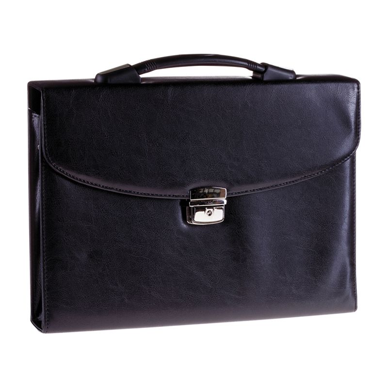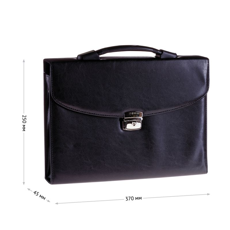 Портфель OfficeSpace "Pulsar", кожзам, черный, 3 отделения, метал. замок, с ремнем
