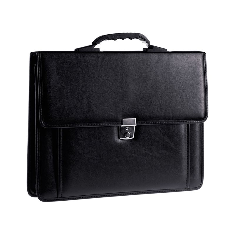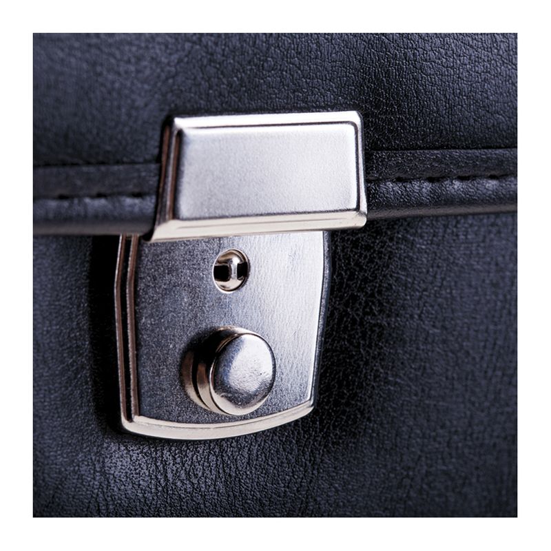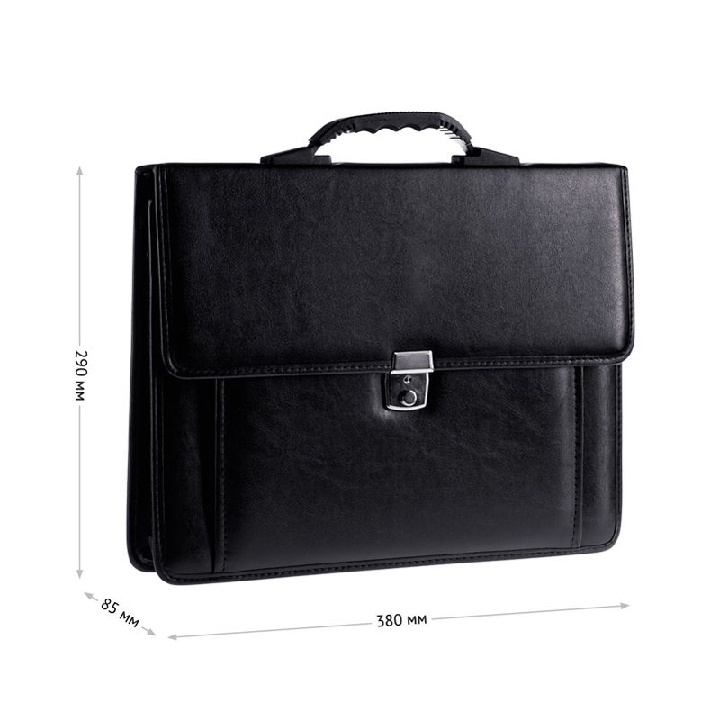 Портфель OfficeSpace "Rotterdam", люкс кожзам, черный, 3 отделения, метал. замок, с ремнем