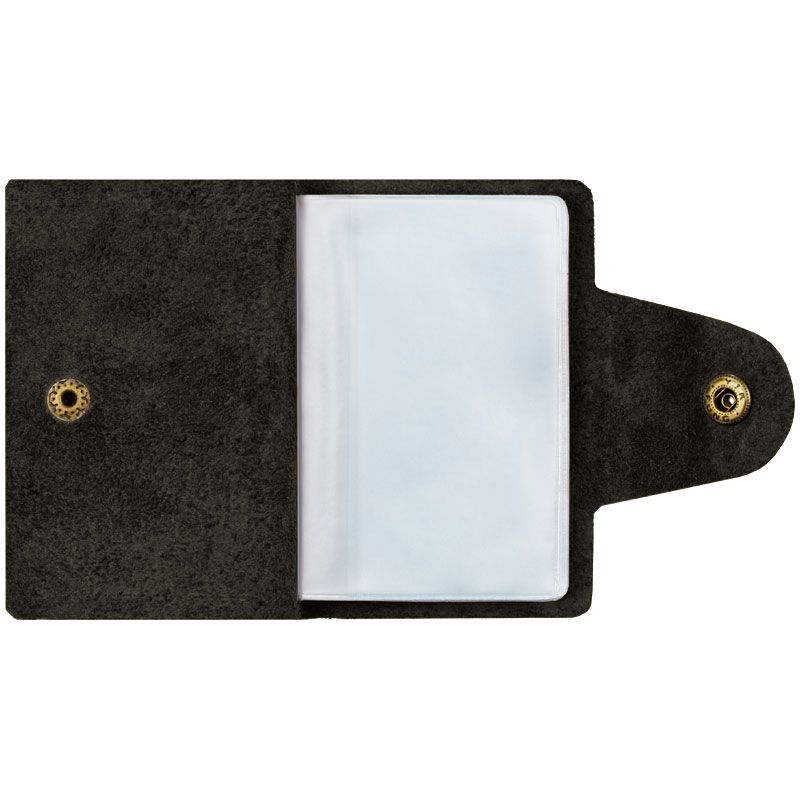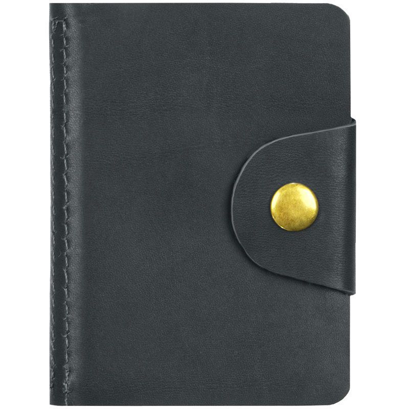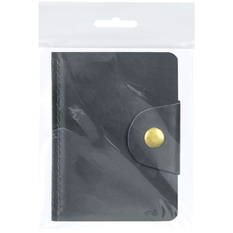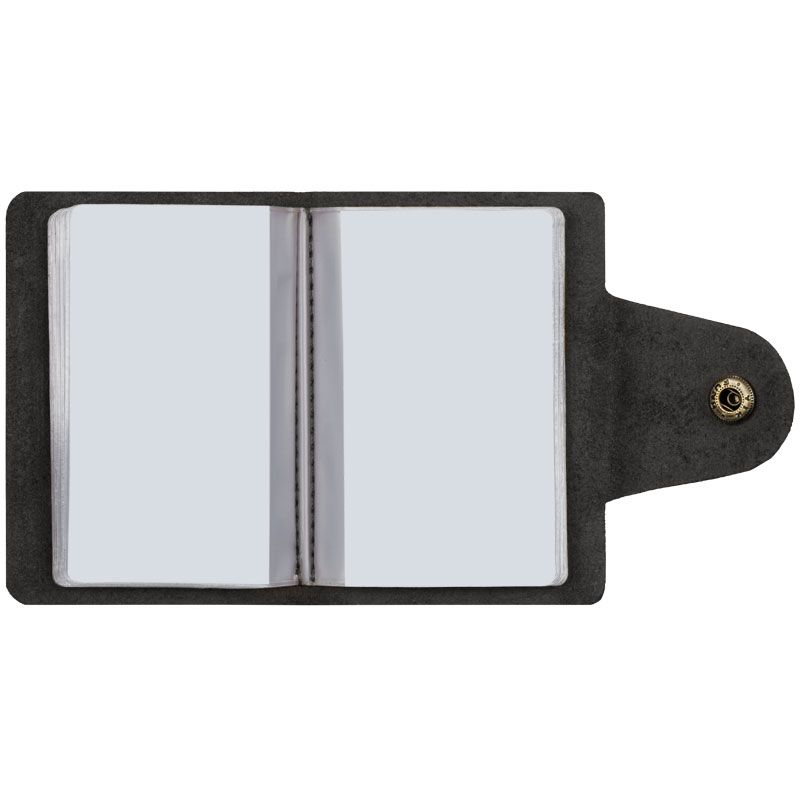 Визитница карманная OfficeSpace на кнопке, 10*7см, 18 карманов, натуральная кожа, черный