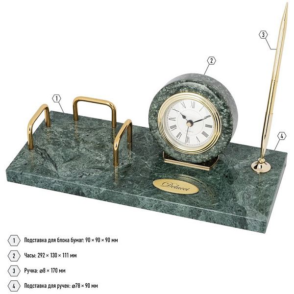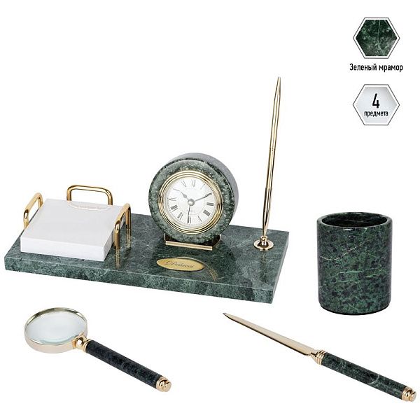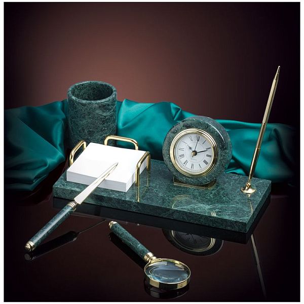 Настольные наборы различаются по составу элементов, материалам изготовления и функциональности, что делает их удобными для оформления кабинета руководителя.