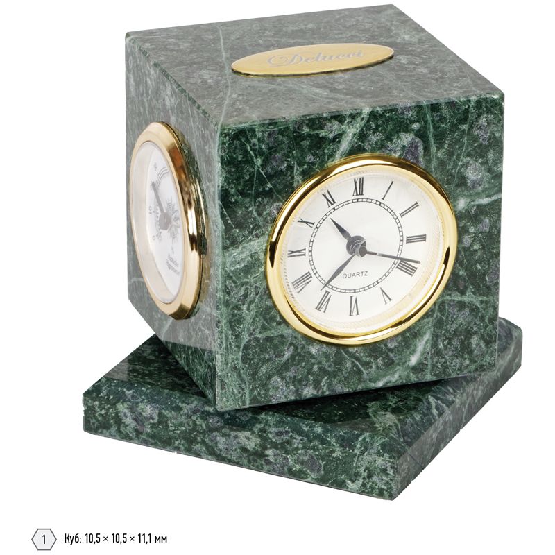 Куб вращающийся Delucci с часами, термометром, гигрометром, зеленый мрамор