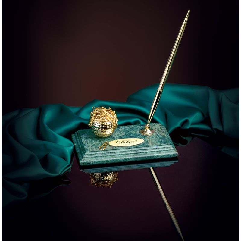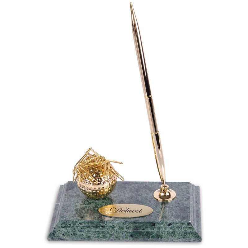 Подставка под ручку Delucci с диспенсером для скрепок, зеленый мрамор