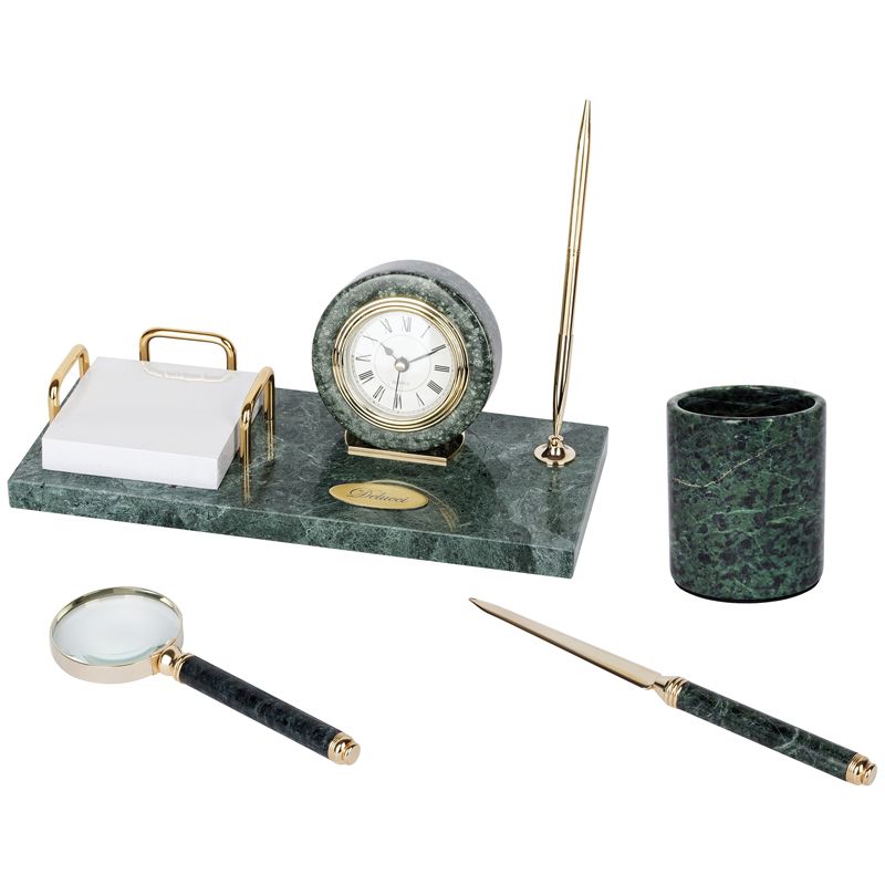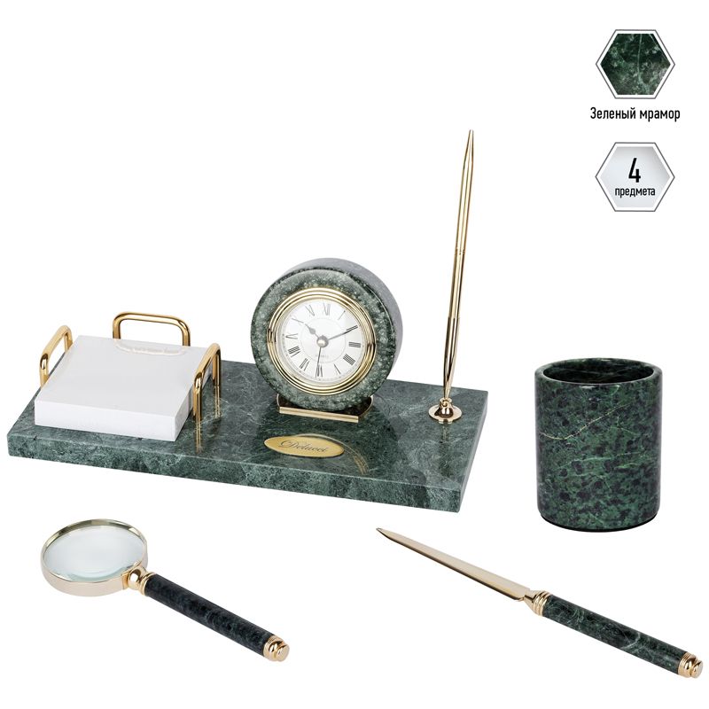 Набор настольный Delucci 4 предмета, зеленый мрамор