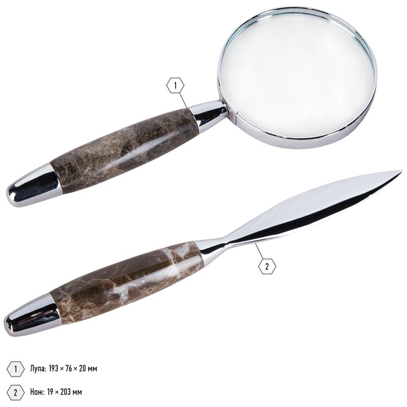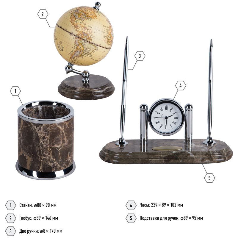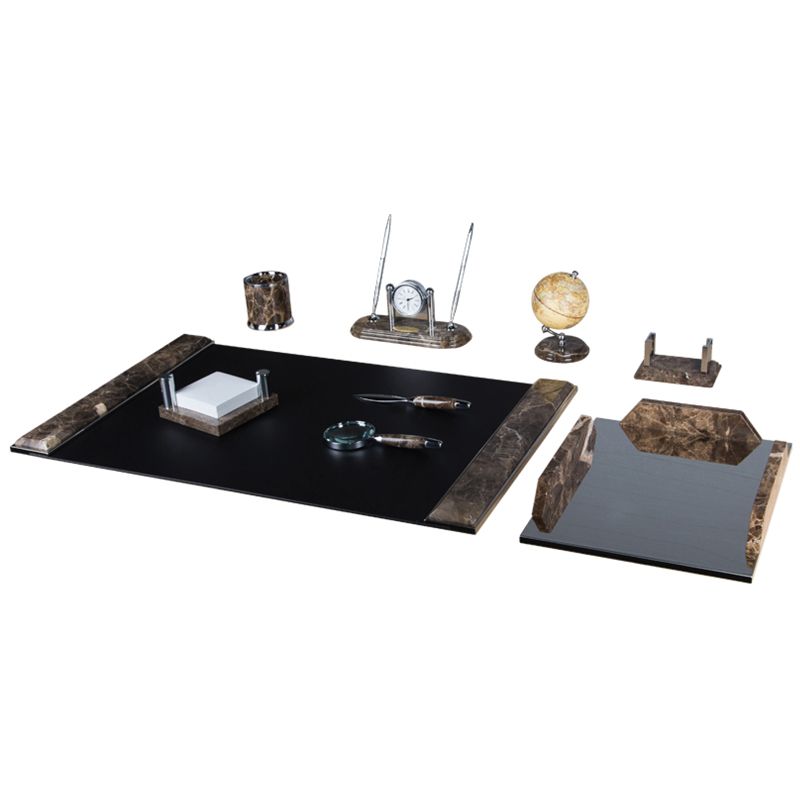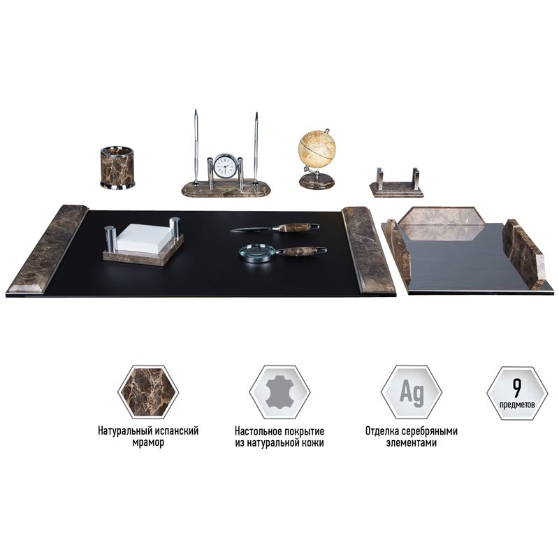 Набор настольный подарочный Delucci 9 предметов, испанский мрамор с серебр. отделкой, часы в комплекте