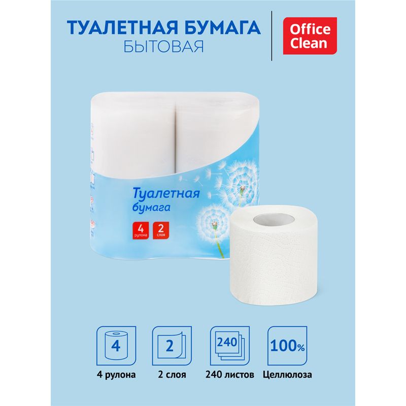 Бумага туалетная OfficeClean, 2-слойная, 4шт., 30м/рул., тиснение, белая