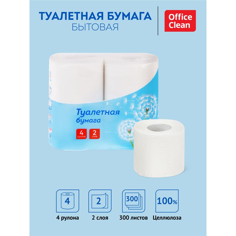 Бумага туалетная OfficeClean, 2-слойная, 4шт., 37,5м/рул.,тиснение, белая