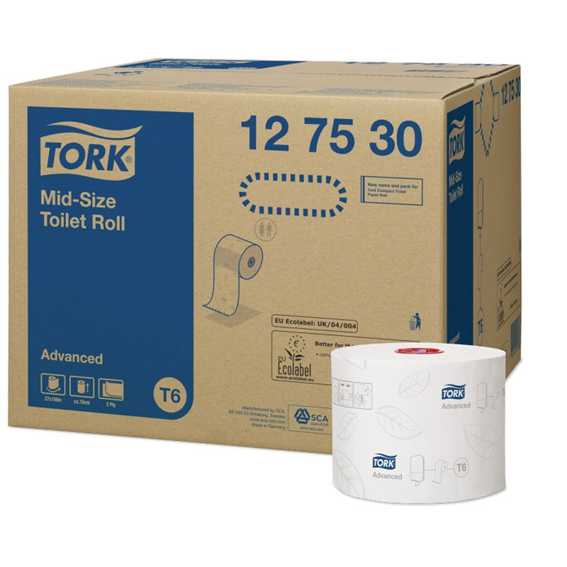 Бумага туалетная Tork "Advanced"(Т6) 2-слойная, Mid-size рулон, 100м/рул., мягкая, тиснение, белая