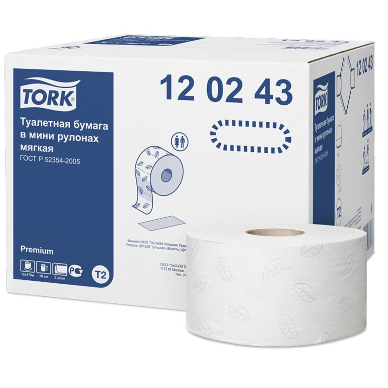 Бумага туалетная Tork "Premium"(T2) 2-слойная, мини-рулон, 170м/рул., мягкая, тиснение, белая