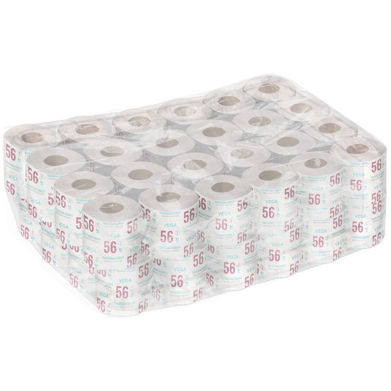 Бумага туалетная Vega, 1-слойная, 56м/рул., на втулке, с перф., серая