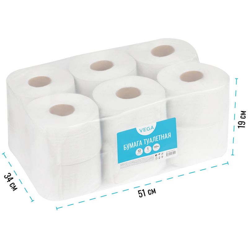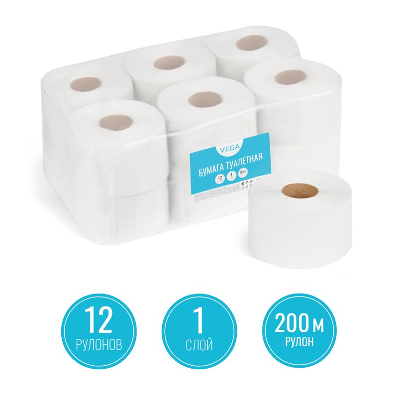 Бумага туалетная Vega Professional, 1-сл., 200м/рул., белая