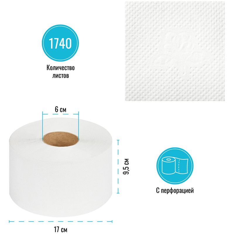 С перфорацией, дает возможность порционирования бумаги. Рулоны изготовлены из макулатуры, переработанного экологически чистого сырья.