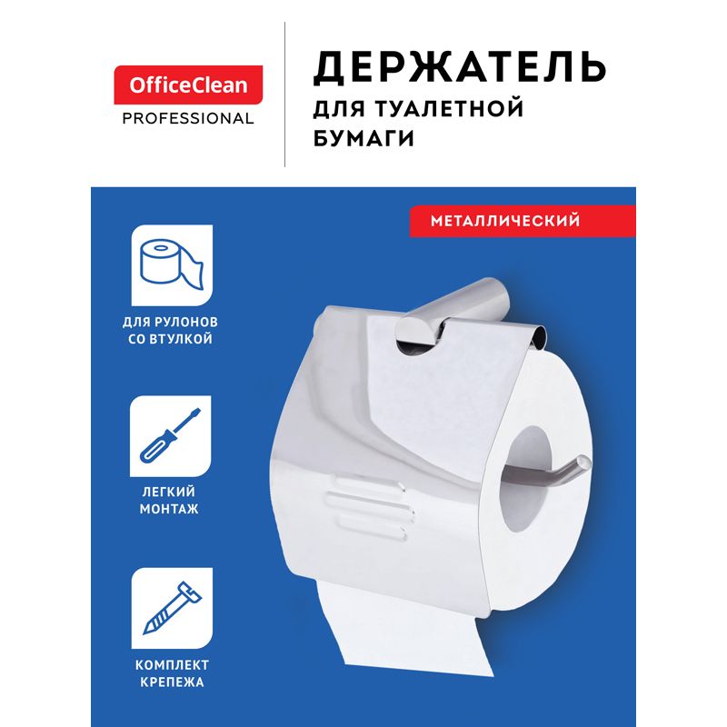 Держатель может крепиться к стене двумя простыми способами: саморезами (входят в комплект поставки) или надежным двусторонним скотчем (не входит в комплект поставки). Благодаря минималистичному дизайну, держатель станет идеальным дополнением к любому интерьеру. Держатель для туалетной бумаги OfficeClean Simple сочетает в себе доступную цену за отличное качество и удобный функционал.