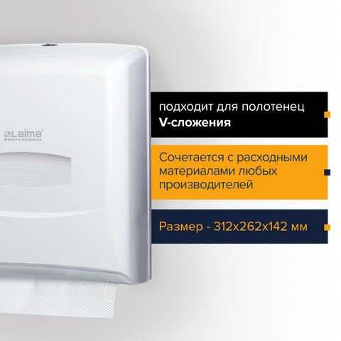 Диспенсер для полотенец LAIMA PROFESSIONAL CLASSIC (Система H3), V-сложения, белый, ABS-пластик, 601426