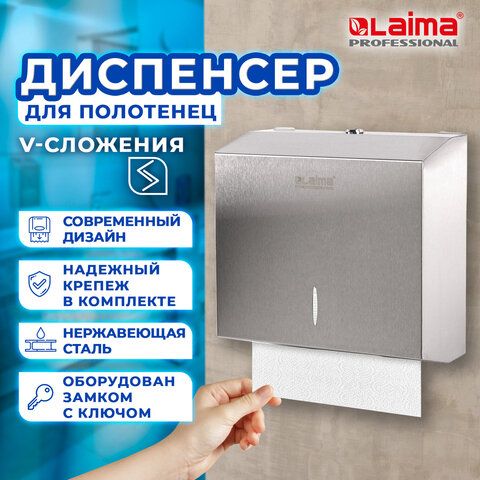 Диспенсер для полотенец LAIMA PROFESSIONAL INOX, (Система H3) V-сложения, нержавеющая сталь, матовый, 605696