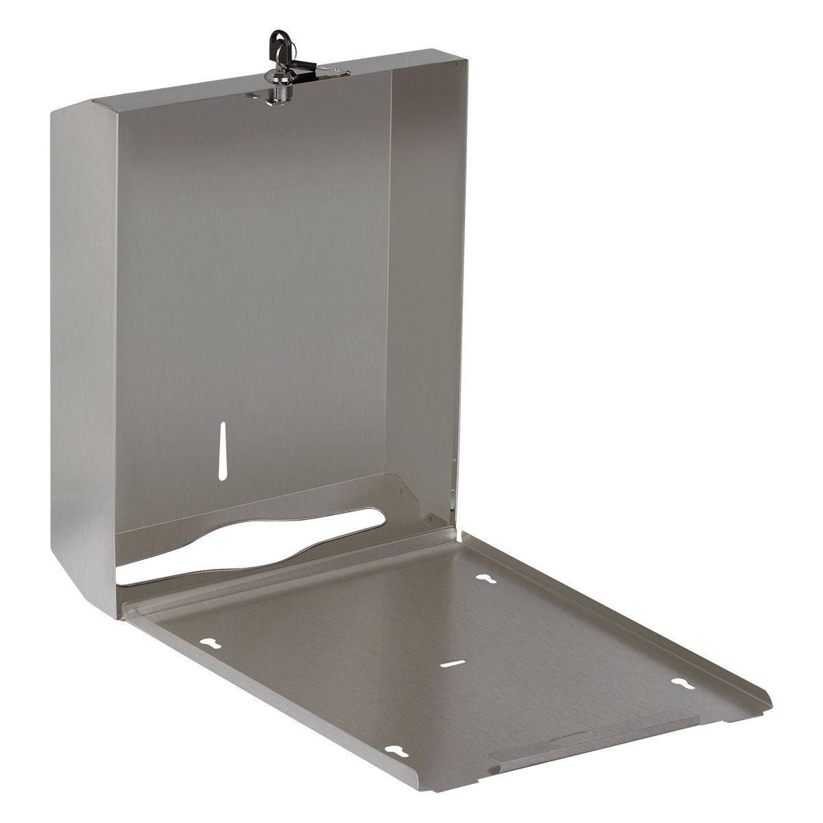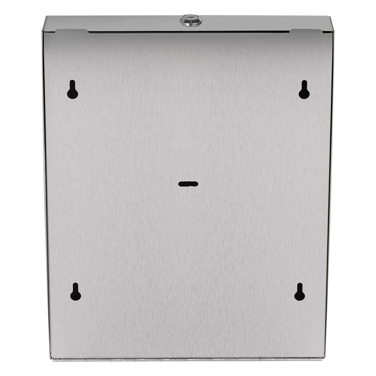 Металлический антивандальный корпус — оптимальное решение для туалетных комнат с большой проходимостью. Конструкция выдержит не только физическое воздействие, но и предотвратит кражу расходного материала. Диспенсер закрывается на металлический ключ, который входит в комплект, как и материалы для крепежа. Ширина диспенсера составляет 282 мм, высота — 365 мм. Глубина — 102 мм.