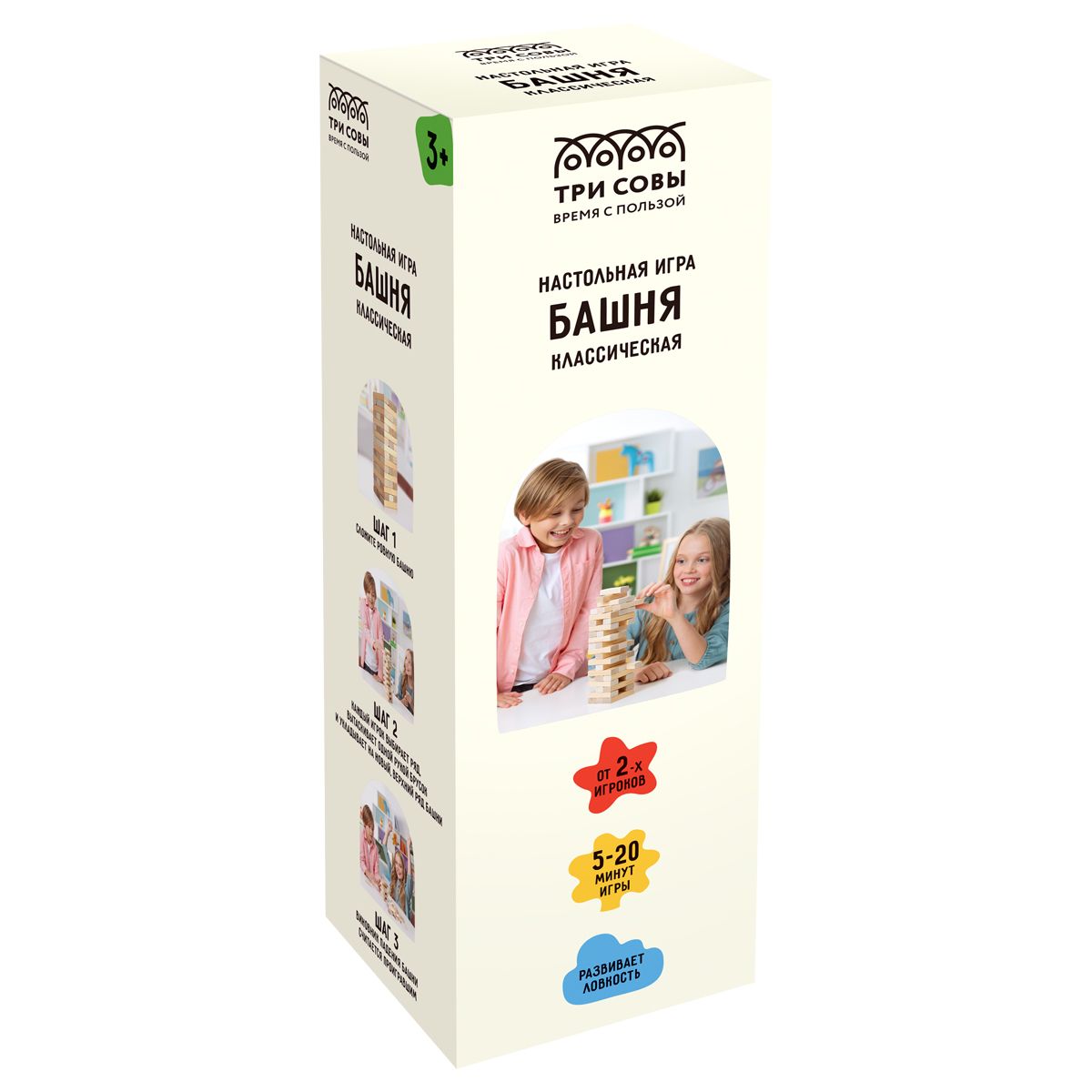 Игра настольная ТРИ СОВЫ "Башня классическая", 48 неокраш. дерев. блоков