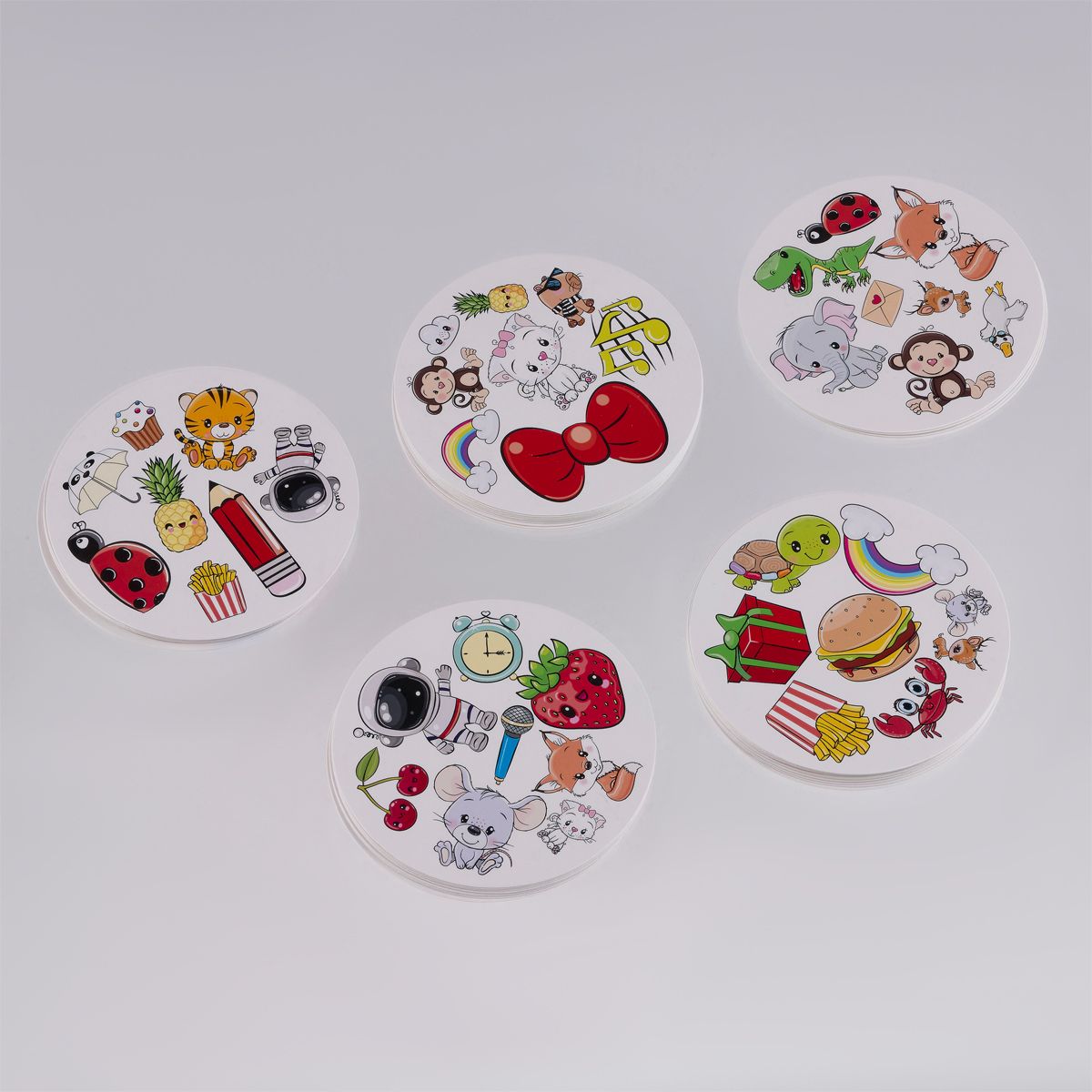 В комплект игры входят 60 карт и правила игры. Они упакованы в милый металлический бокс. Игра подходит для детей от трёх лет.