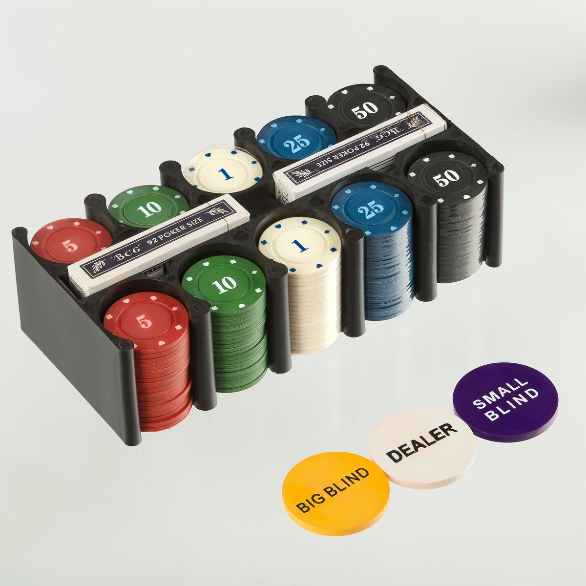 • Фишки покерные — 200 шт. (с номиналом);