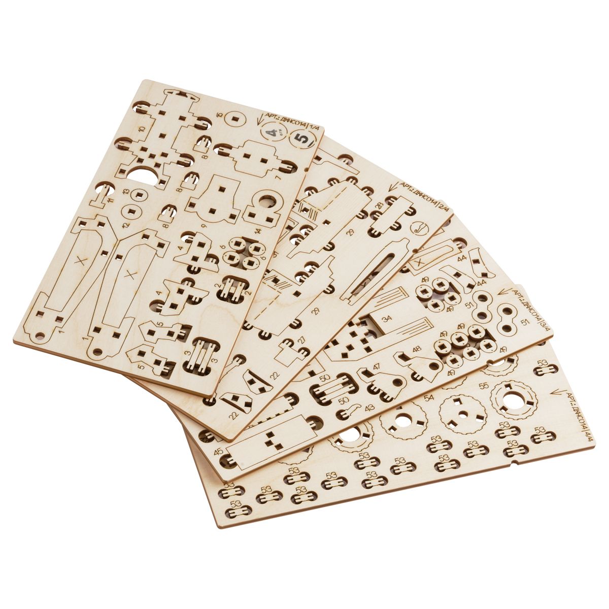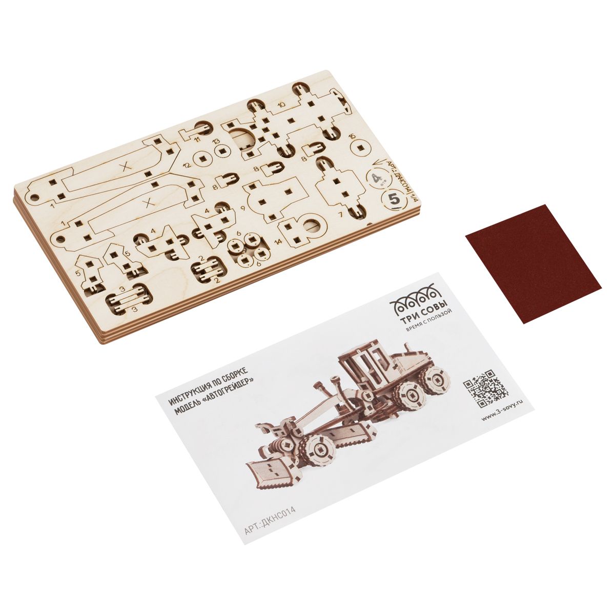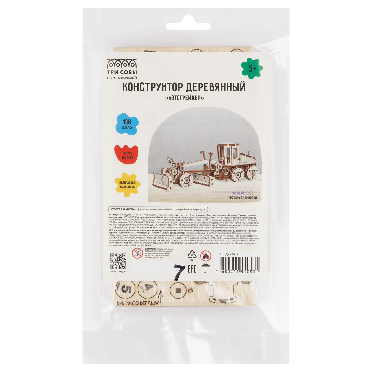Конструктор деревянный ТРИ СОВЫ "Автогрейдер", 15,5*5*5,5см, 108 деталей, пакет с еврослотом