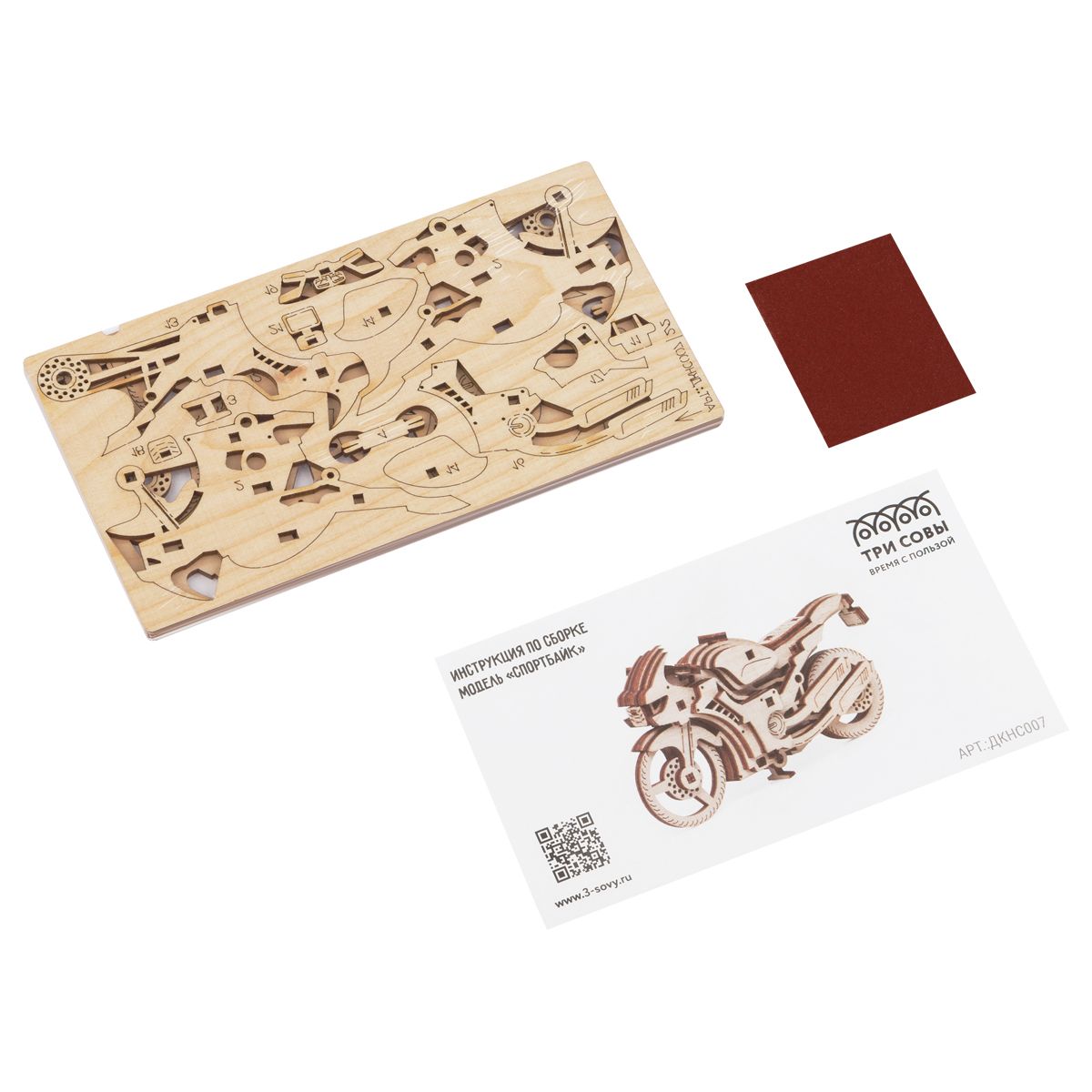 Конструктор деревянный ТРИ СОВЫ "Спортбайк". 11*3,5*5,5см, 29 деталей, пакет с еврослотом