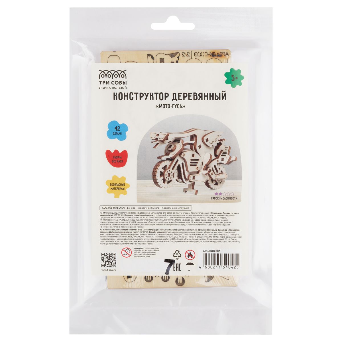 Конструктор деревянный ТРИ СОВЫ "Мото-Гусь",10,5*3,5*6,5см, 42 детали, пакет с еврослотом