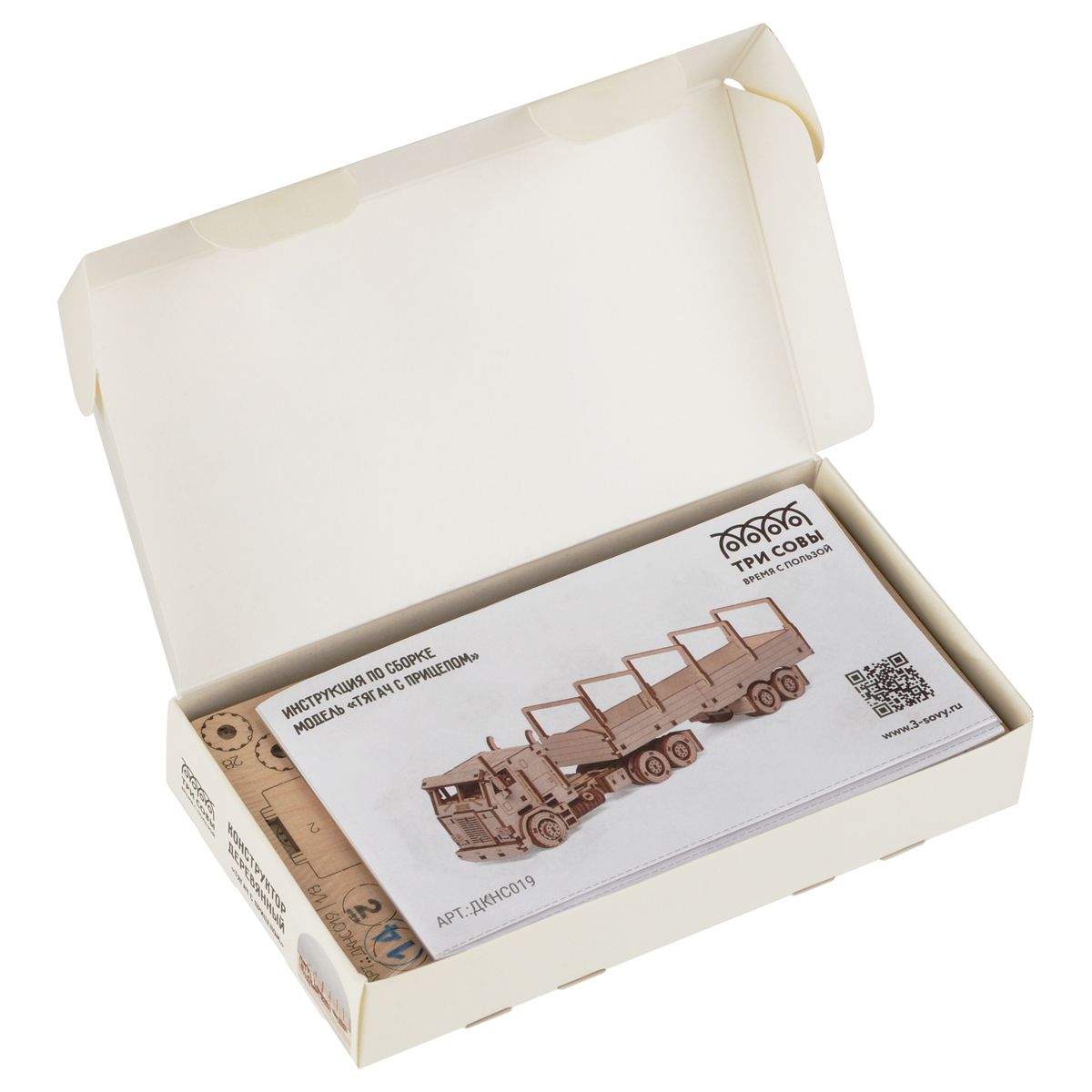 Конструктор деревянный ТРИ СОВЫ "Тягач с прицепом", 25*5,8*6,7м, 190 деталей, картонная коробка