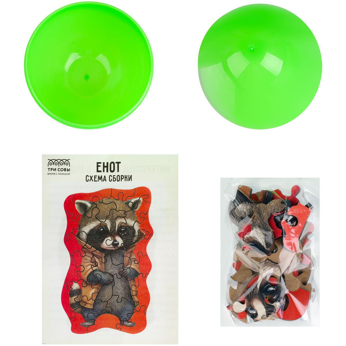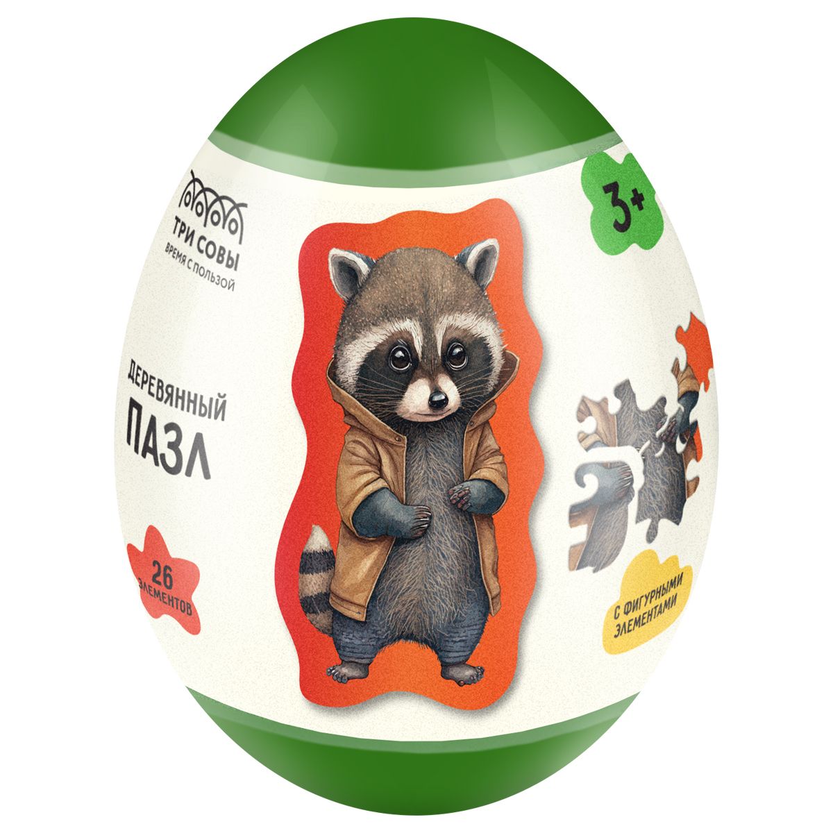 Деревянный пазл в яйце ТРИ СОВЫ "Енот"
