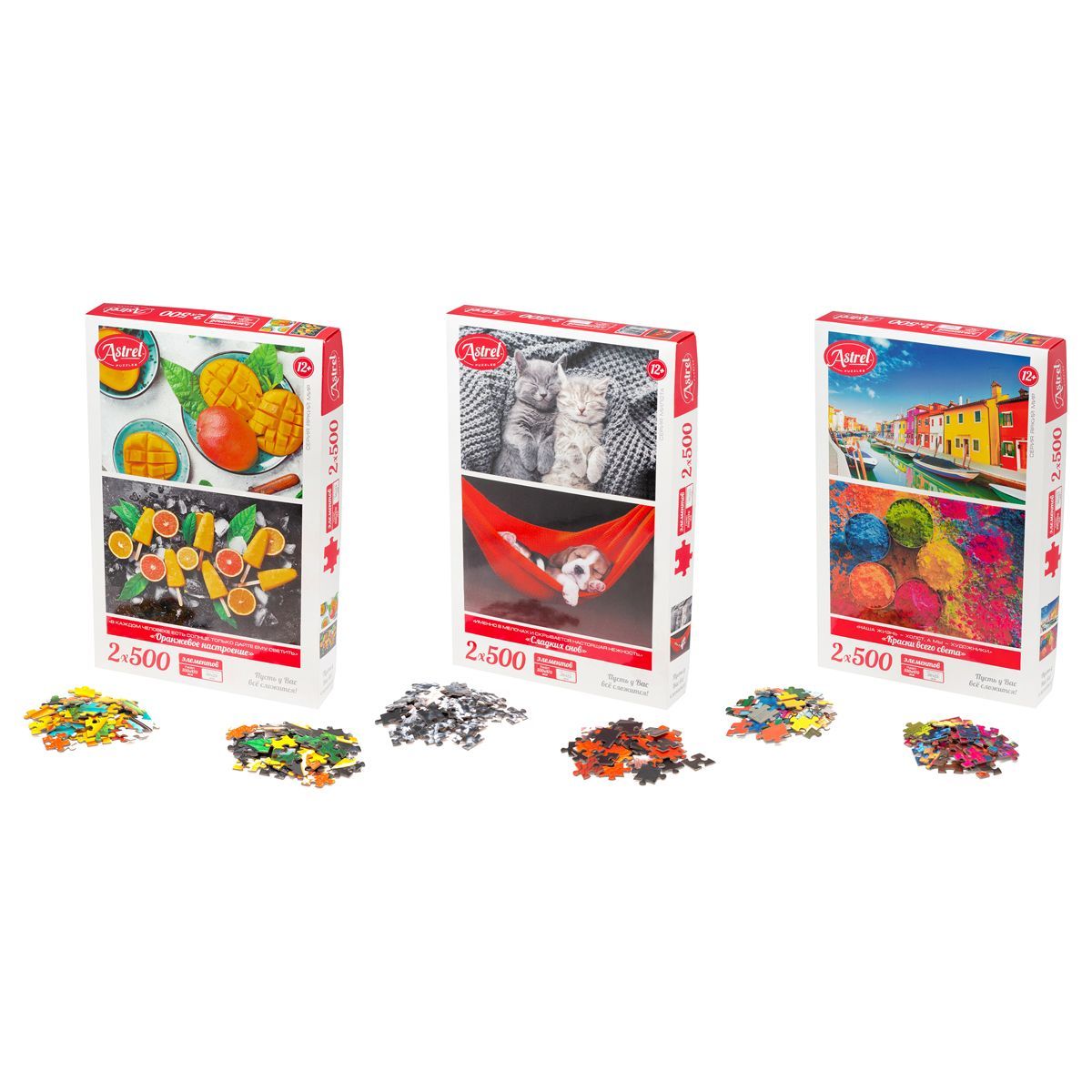 Пазл 2*500 эл. Origami "Astrel. Оранжевое настроение/Сладких снов!/Краски всего света", ассорти