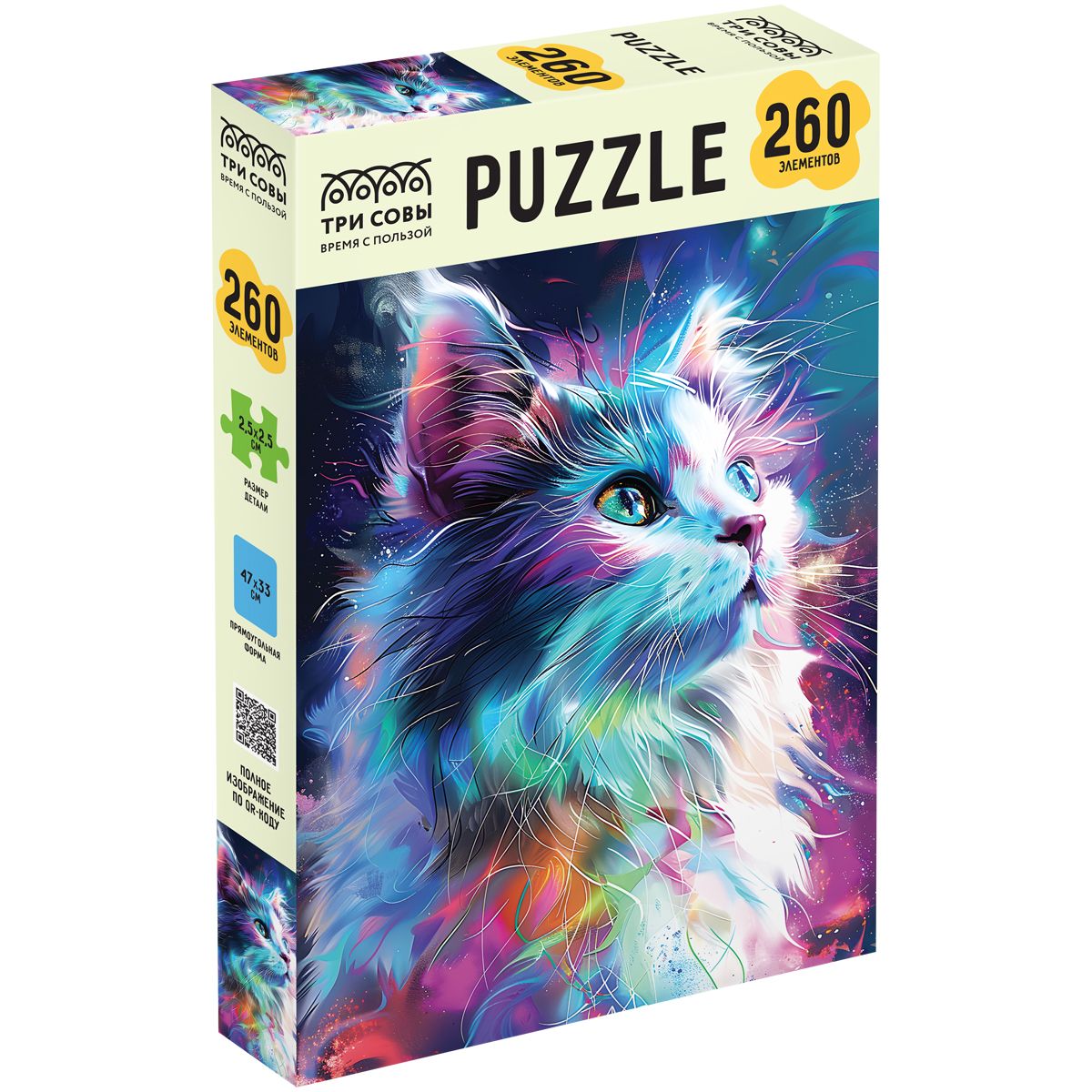 Пазл 260 эл. ТРИ СОВЫ "Неоновый кот"